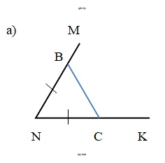 1.112. а) Постройте угол MNK, градусная мера которого равна 60º. На сторонах угла отложите равные отрезки NB и NC и соедините отрезком точки В и С.