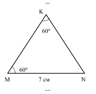 $\angle N = 180^\circ - \angle M - \angle K = 180^\circ - 60^\circ - 60^\circ = 60^\circ$. - С помощью линейки построим отрезок $MN$ длиной 7 см.