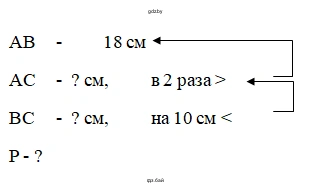 1.158. Найдите периметр треугольника АВС, если сторона АВ равна 18 см, сторона АС в два раза больше стороны АВ, а сторона ВС на 10 см меньше стороны АС.