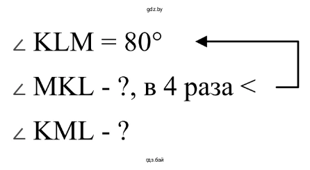 1.160. В треугольнике KLM угол KLM равен 80º, а угол MKL в 4 раза меньше. Найдите угол KML.