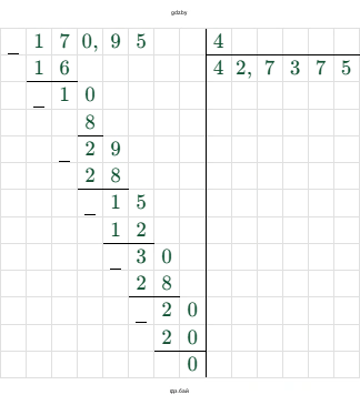 2. Теперь разделим полученную сумму на количество чисел (в данном случае их 4): $170,95 : 4 = 42,7375$