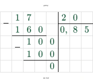 $\frac{17}{20} = \frac{17 \times 5}{20 \times 5} = \frac{85}{100} = 0,85$