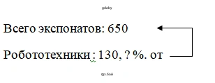 Чтобы найти, сколько процентов всех экспонатов составляла робототехника, необходимо найти отношение количества экспонатов робототехники к общему числу экспонатов и выразить это отношение в процентах.