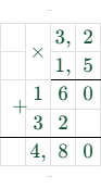 Третье число: $3,2 \cdot 1,5 = 4,8$.