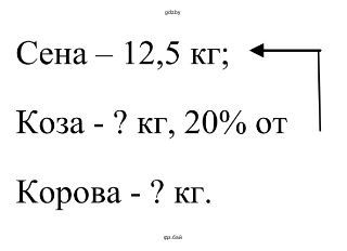 1.82. Зимой для хорошего удоя козе и корове в сутки давали 12,5 кг сена. Из них коза съедала 20 % всего сена. Сколько килограммов сена съедала корова?