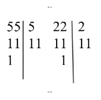 НОК(55, 22) = $2 \times 5 \times 11 = 110$.