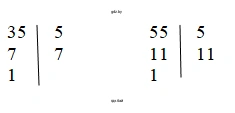 НОК(55, 35) вычисляется как произведение всех уникальных множителей в наибольшей степени: $5 \cdot 7 \cdot 11 = 385$.