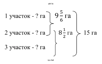 Также нам дано, что площадь первого и второго участков вместе равна $9\frac{5}{6}$ га: $S_1 + S_2 = 9\frac{5}{6}$.