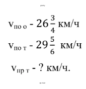 $v_{против\;теч} = 26\frac{3}{4} - 3\frac{1}{12}$