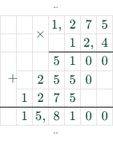3. После выполнения действий в скобках выражение принимает вид: $1,275 \cdot 12,4 - 2,6 : 3,25$. Следующим действием выполним умножение: