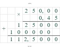 Вычисляем 45 % от 250 р.: $250 \cdot \frac{45}{100} = 250 \cdot 0.45 = 112.5$ р.