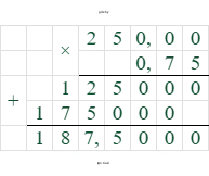 Вычисляем 75 % от 250 р.: $250 \cdot \frac{75}{100} = 250 \cdot 0.75 = 187.5$ р.