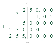 Вычисляем 102 % от 250 р.: $250 \cdot \frac{102}{100} = 250 \cdot 1.02 = 255$ р.