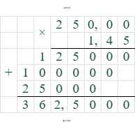 Вычисляем 145 % от 250 р.: $250 \cdot \frac{145}{100} = 250 \cdot 1.45 = 362.5$ р.