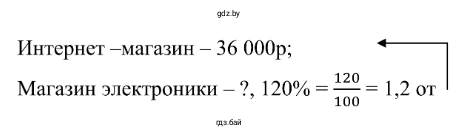 По условию, цена ноутбука в интернет-магазине составляет 36 000 рублей. Эту цену примем за 100%. Цена в магазине электроники составляет 120% от цены в интернет-магазине.
