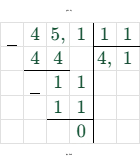 $4,51 : 1,1 = 45,1 : 11 = 4,1$