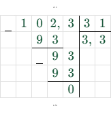 $10,23 : 3,1 = 102,3 : 31 = 3,3$