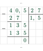$4,05 : 2,7 = 40,5 : 27 = 1,5$
