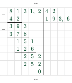 2. Второе действие — первое деление: $813,12 : 4,2$.