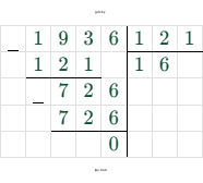 Умножим делимое и делитель на 10: $1936 : 121$.