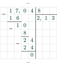 1) $1,704 : 0,8 = 2,13$