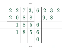 3) $227,36 : 23,2 = 9,8$