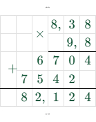 4) $9,8 \cdot 8,38 = 82,124$