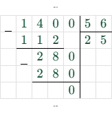 Теперь разделим 1400 на 56: $1400 \div 56 = 25$