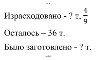 Мы знаем, что оставшиеся $\frac{5}{9}$ сена составляют 36 тонн. Чтобы найти целое по его части, нужно значение этой части (36 т) разделить на дробь, которую эта часть составляет ($\frac{5}{9}$).