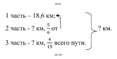 $18,6 \cdot \frac{5}{6} = \frac{18,6 \cdot 5}{6} = 3,1 \cdot 5 = 15,5$ км.