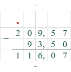 5. Выполним вычитание: $209,57 - 93,5 = 116,07$.