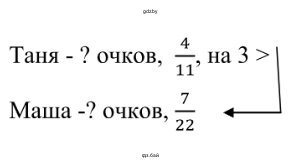 Из условия мы знаем, что Таня набрала $\frac{4}{11}$ от всех очков. Это можно записать как $\frac{4}{11}x$.