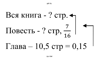 Из условия известно, что 10,5 страницы составляют 0,15 всей повести. Чтобы найти целое по его части, нужно значение этой части разделить на ее долю.