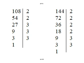 НОД(108, 144) = $2^2 \cdot 3^2 = 4 \cdot 9 = 36$.