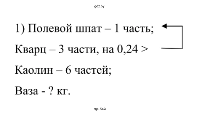2. 1) Фарфор может состоять из 1 части полевого шпата, 3 частей кварца и 6 частей каолина (белая глина) Найдите массу вазы, если в ней кварца на 0,24 кг больше, чем полевого шпата.