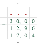 $30 - 12,96 = 30,00 - 12,96 = 17,04$.