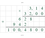 $C = 3,14 \cdot 32 = 100,48$ дм.