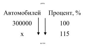 $x = \frac{300\;000 \times 115}{100} = 3\;000 \times 115 = 345\;000$ (автомобилей).