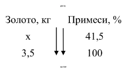 1. Общая масса золота составляет 3,5 кг. Процентное содержание примесей равно 41,5%. Для начала переведем проценты в десятичную дробь, разделив на 100: