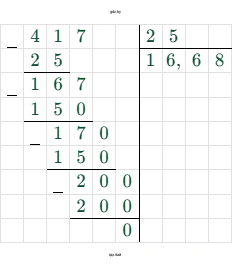 $ \frac{41,7 \times 100}{250} = \frac{4170}{250} = \frac{417}{25} = 16,68\% $
