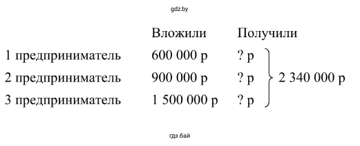 1) 600000 + 900000 + 1500000 = 3000000 (р) – вложили все предприниматели вместе;