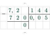 $0,72 : 14,4 = 7,2 : 144 = 0,05$