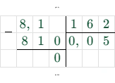 $0,81 : 16,2 = 8,1 : 162 = 0,05$