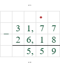 5. Выполним вычитание слева направо: $31,77 - 26,18 = 5,59$.