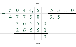 $5044,5 : 531 = 9,5$