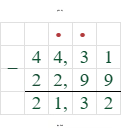 5. Выполним вычитание слева направо: $44,31 - 22,99 = 21,32$.