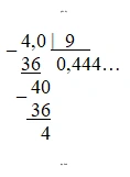 $4 \div 9 = 0,444...$