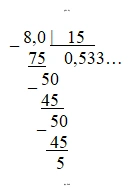 $8 \div 15 = 0,5333...$