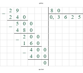 $29 \div 80 = 0,3625$.