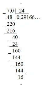 $7 \div 24 = 0,291666... = 0,291(6)$.
